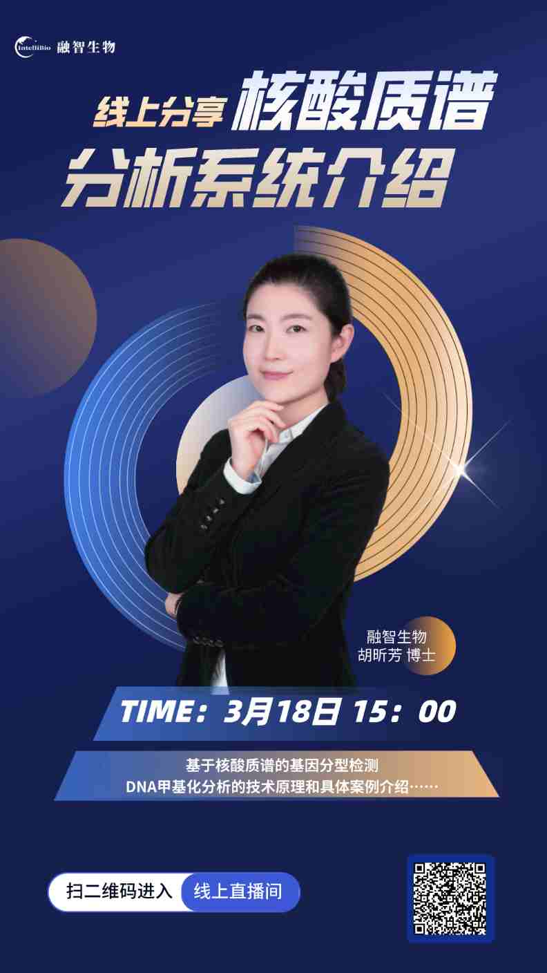 為展示核酸質(zhì)譜平臺的功能和分享最新研究成果,融智生物和檢驗醫(yī)學(xué)網(wǎng)將于2022年3月18日(本周五)15:00共同主辦線上主題論壇——“核酸質(zhì)譜分析系統(tǒng)介紹”,主要內(nèi)容將圍繞:基于核酸質(zhì)譜的基因分型檢測、DNA甲基化分析的技術(shù)原理和具體案例介紹等,敬請參加!